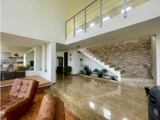 La casa es moderna tiene 5 ambientes con comodos espacios, cocina en isla y licorera moderna, patio, terrazas privadas y social, con vista al pueblo y jardín zen interior.